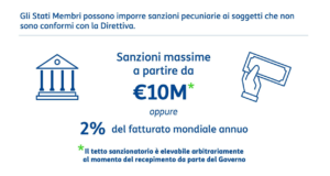 La NIS2 prevede l’imposizione di sanzioni amministrative che possono essere molto importanti per le violazioni da parte dei soggetti obbligati: